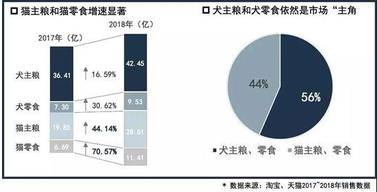 其中猫主粮和猫零食增速最为显著,可见喵星人的日渐“受宠”。但是犬主粮和犬零食依然是市场“主角”,且增长稳定。
