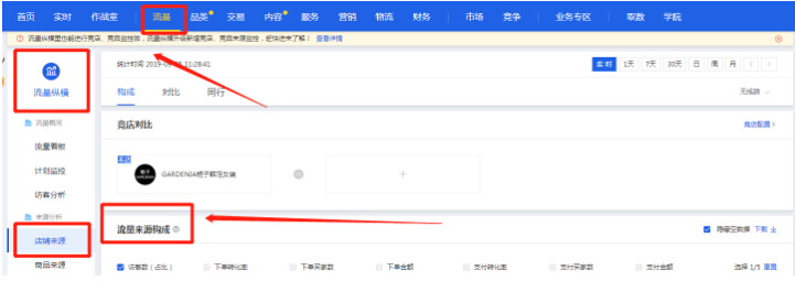 查看以往直播数据入口:生意参谋—流量—店铺来源—流量来源构成。
