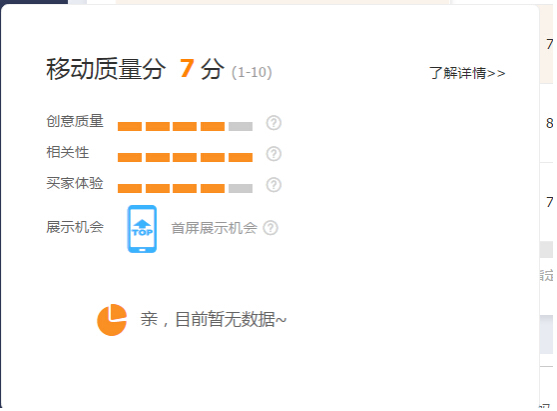 我们进入直通车推广关键词界面 我们可以看到 质量分分为无线端质量分以及PC端质量分,我们可以将鼠标放在质量分的位置上,可以看到质量分为三个维度。也就是创意质量、相关性以及买家体验。