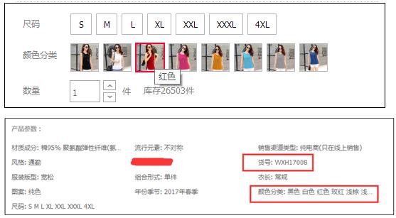 这个重要属性包括的东西主要有:价格、SKU、产品参数中的重要指标。我们还是拿一件衣服举个例子吧,搜索关键词:无袖T恤女