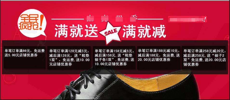 通过高额度减价或者折扣例如满300减100,满2件打5折,满足顾客的贪欲,最大的满足顾客占到便宜的感觉刺激顾客下单。这类大折扣的活动可在大型节日中搞,而且尽量把店铺的促销活动信息放在店铺最显眼的地方,,让进店的顾客跟快更快的了解店铺的促销活动。如果创建的是全店的活动,建议放在店铺的首页,如果设置的单品的活动,建议放在详情页上面。