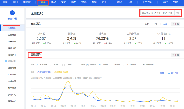 而整天的访客数主要看你的付费流量投入的情况,如果说一直投入是比较大的话,那么你就会下降的慢一些,而对于这样就说明你的店铺的问题是非常大的了。