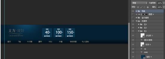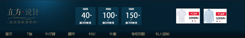 3.接着来制作优惠券,我们采用比底色稍淡一些的蓝色为优惠券的底色,字体颜色设置成白色,与店招底色深蓝产生对比容易凸显出来。