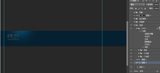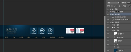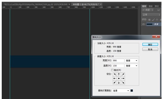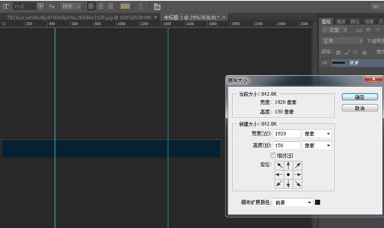 1.我的这个店招是考虑男士低调有内涵所以用了接近于青的深蓝,这样首页看起来更加大气。这里可能有人会问怎么做成中间990px(或者950)的?很简单,新建图层时你先新建一个990*150的图层用标尺拉好位置后,再把画布大小改成1920*150