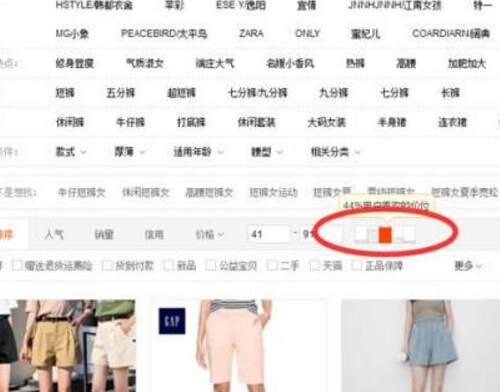 如图4和图5,我们看到搜索“连衣裙”的价格区间117-295是在第三层,而搜索“短裤女”的价格区间41-91的产品同样是在第三层的。属于一个层级范围内,那么就可以说我们产品的价格区间是在相同层级了,我们在上传新商品的时候可以借助层级来制定产品的价格。